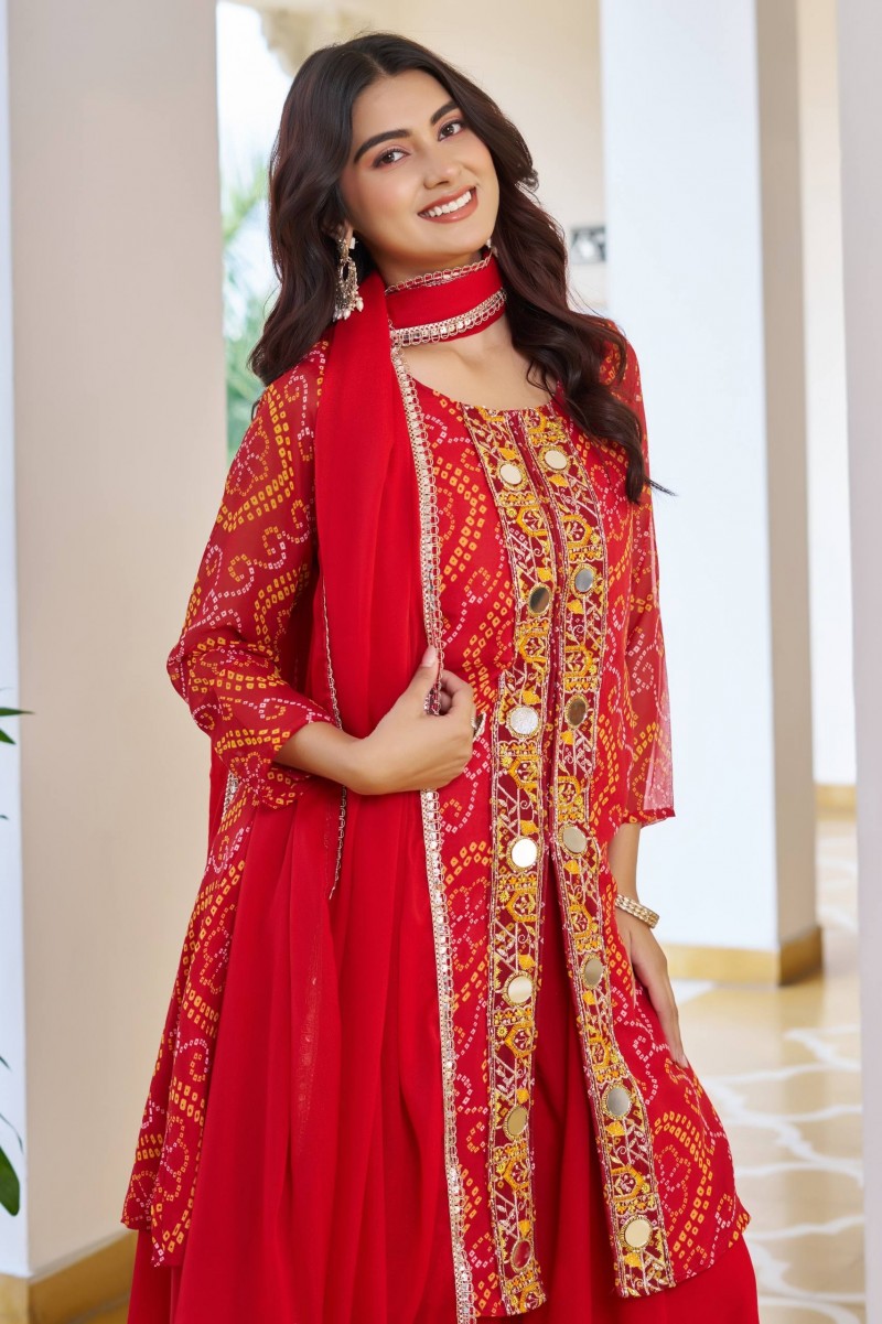Designer Fox Georgette Blouse Plazzo & Dupatta Set - Mirror Work RED