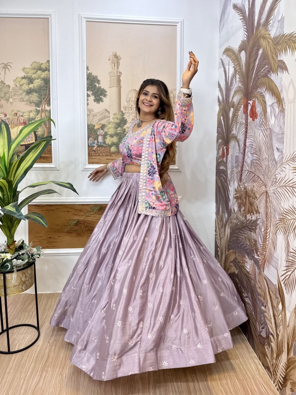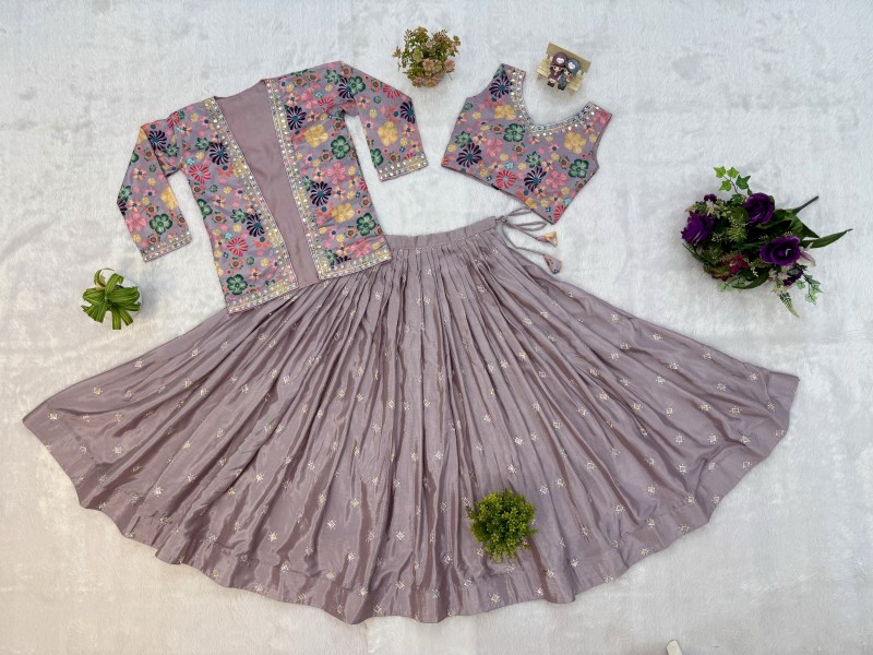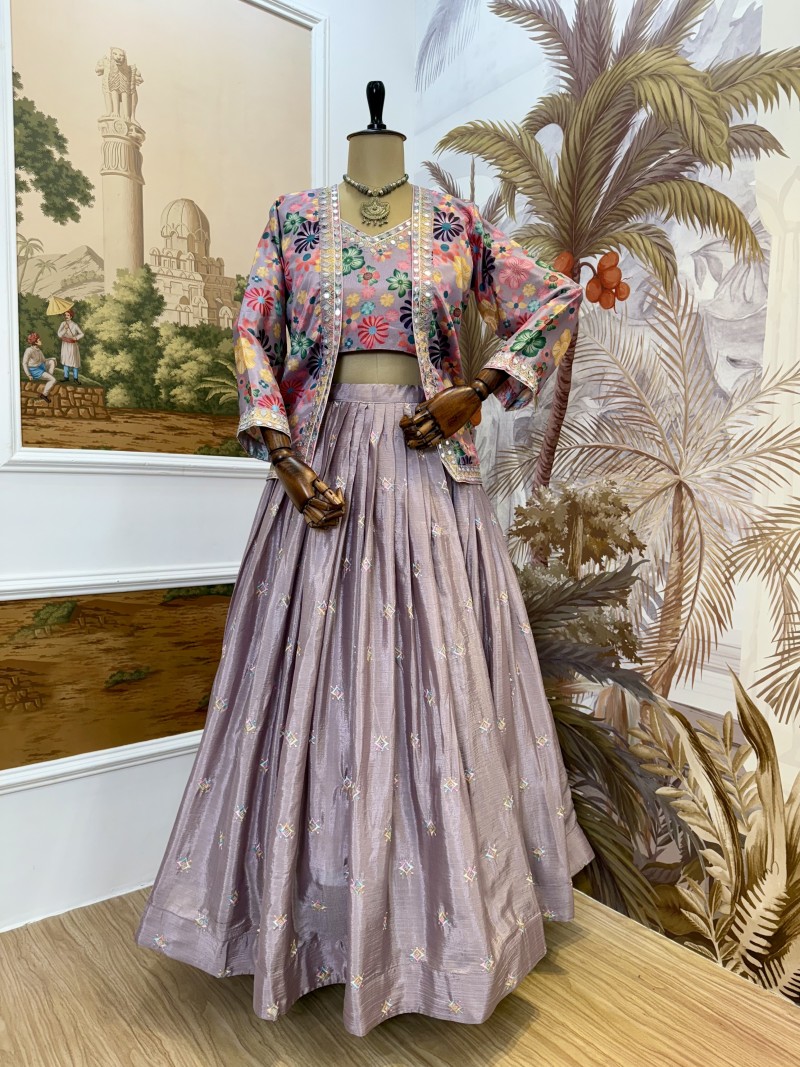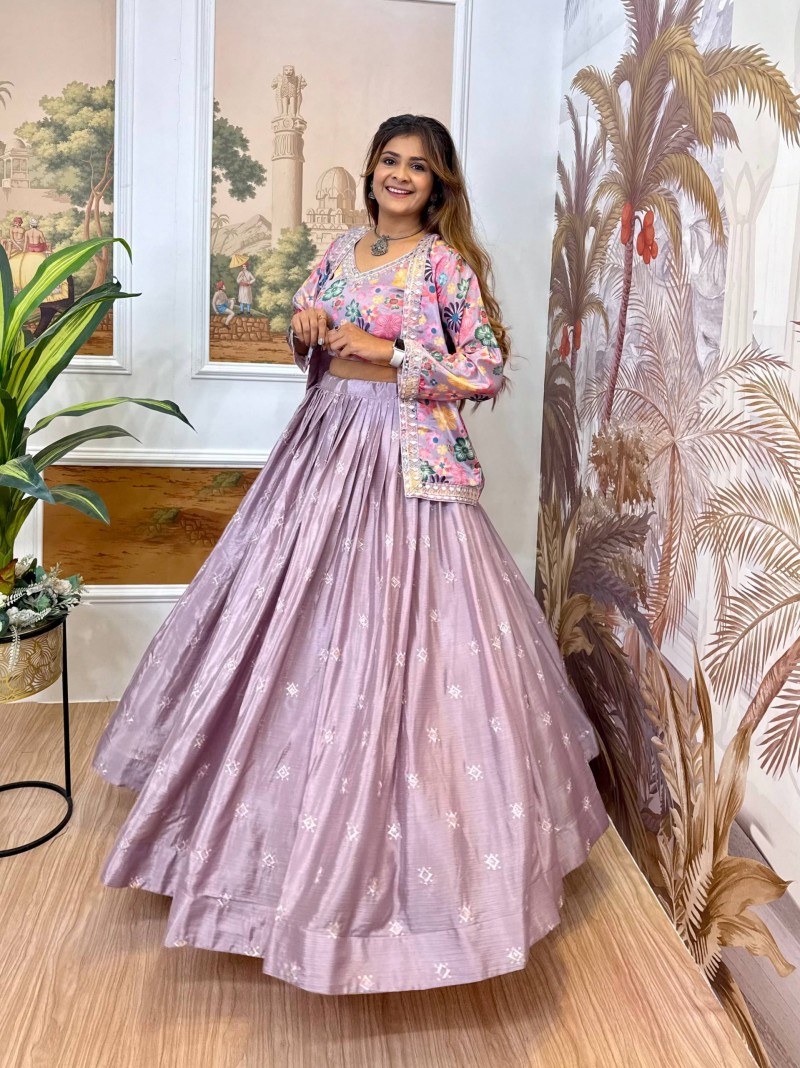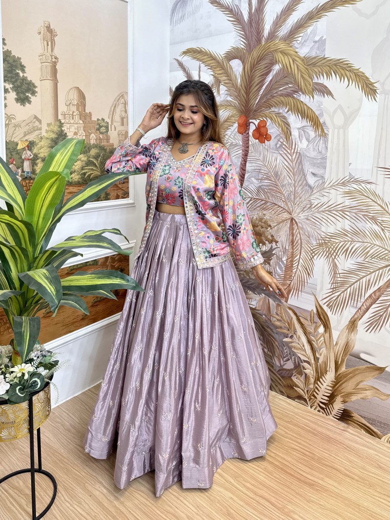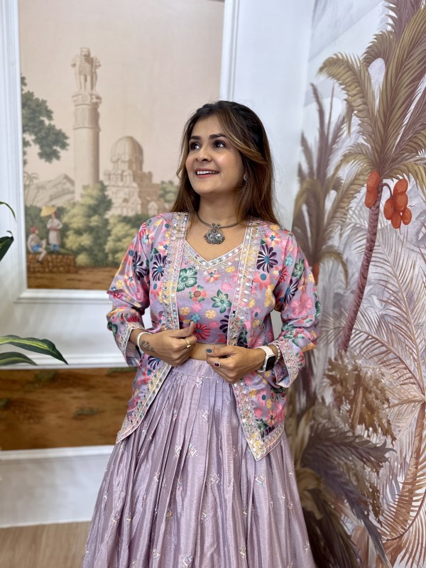Premium Chinon Lehenga Blouse & Koti Set - RR-36 Heavy Embroidery Wedding Wear