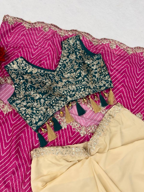 - Blouse: Crafted from luxurious Banglory silk, it features glittering sequin embroidery and tassels at the front, with a comfortable micro inner and a 14?inch height, fitting a free?size silhouette.